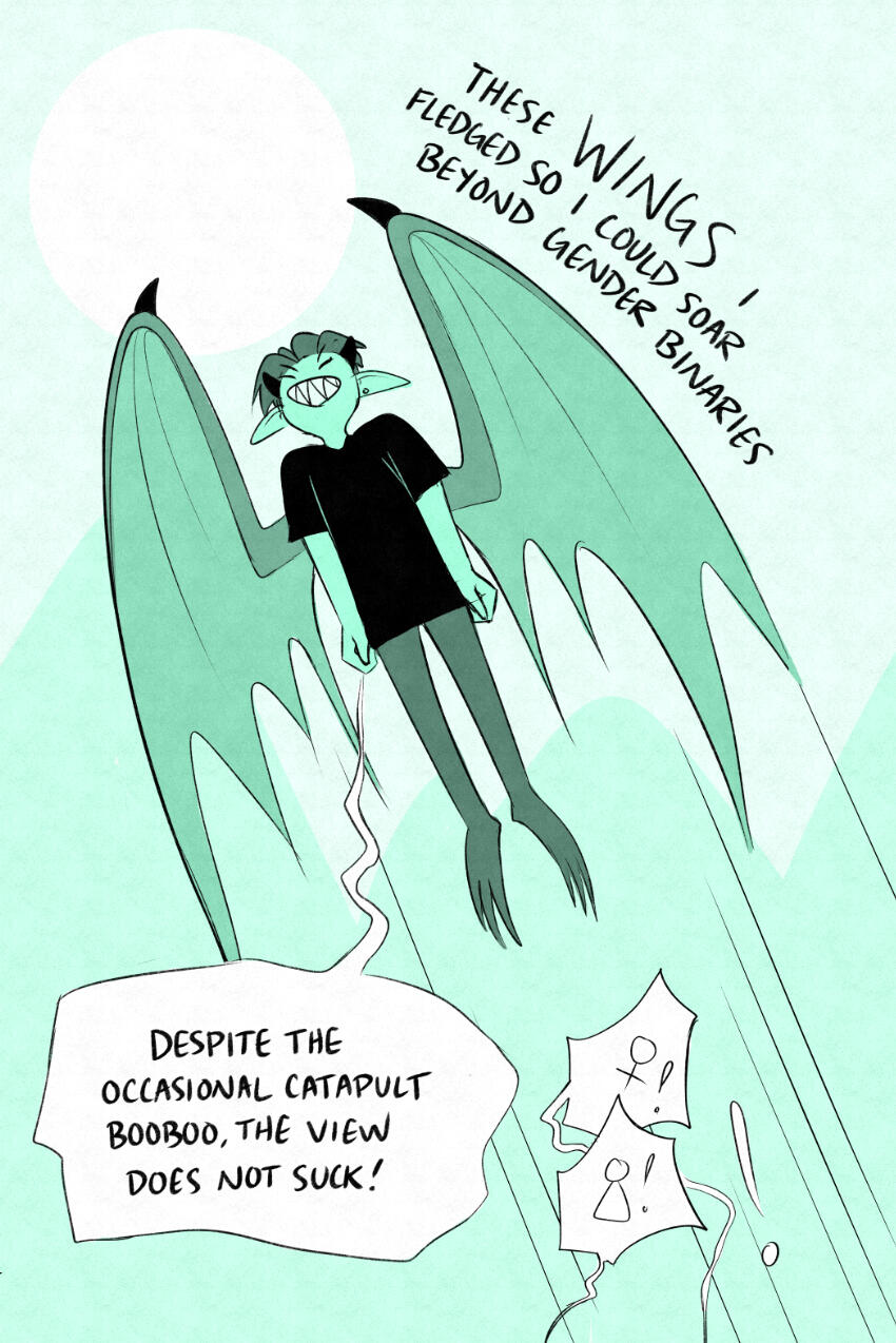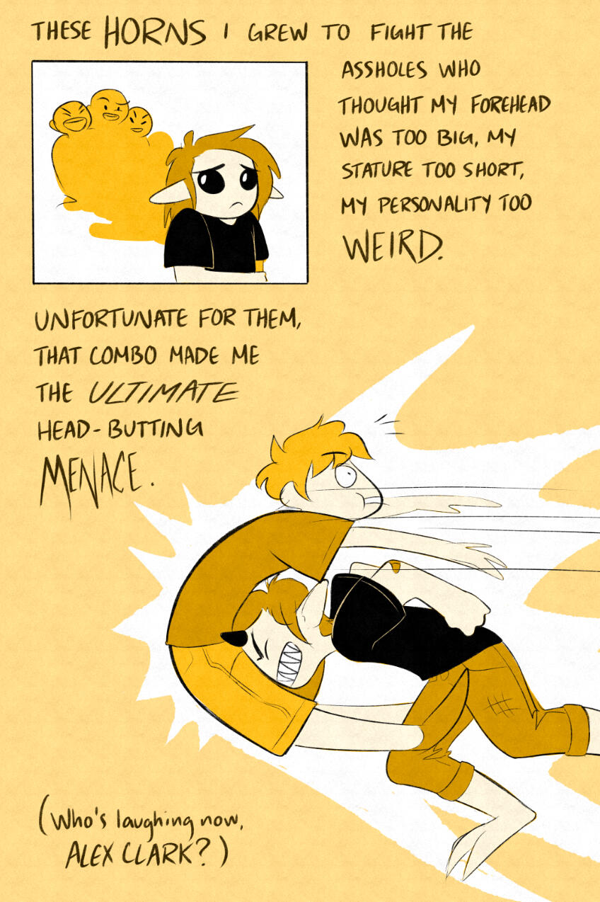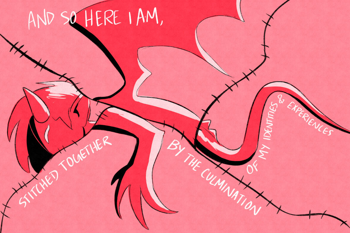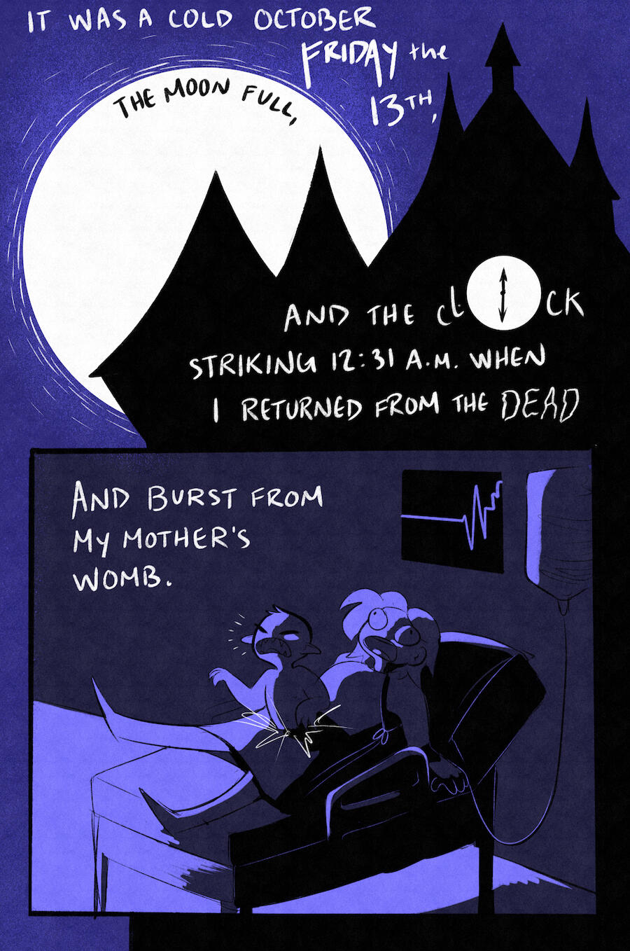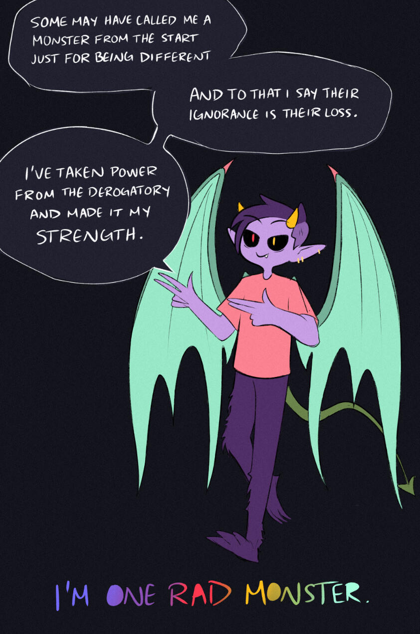 A short comic tying my experience with identity to monstrosity. Read left to right, top to bottom